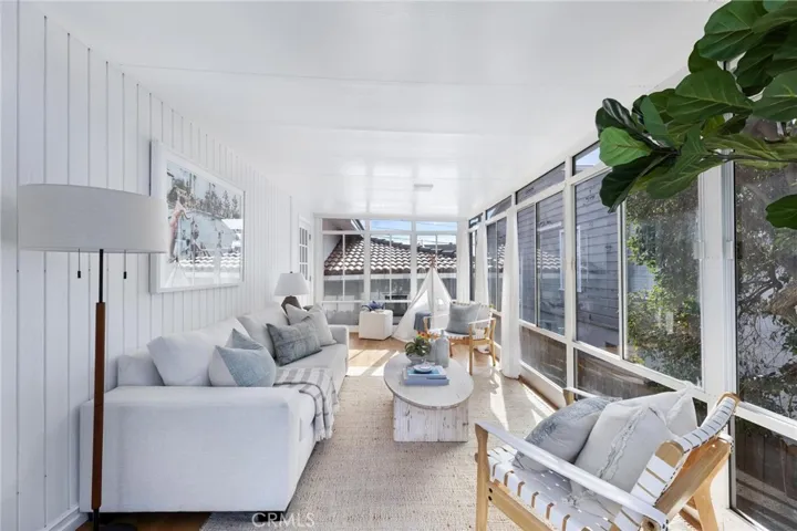 This charming Spanish-style beach bungalow welcomes you through thoughtfully designed front outdoor living spaces, where dining and lounging areas are framed by a mature citrus tree, creating a warm first impression. Tucked away on a quiet cul-de-sac street, the home offers both privacy and a true neighborhood feel. Inside, the main living space unfolds with ease. Anchored by a stone fireplace and illuminated by two large windows, the living room is filled with natural light, creating an inviting atmosphere. Wood floors extend throughout the home, enhancing warmth and continuity. Just off the living room, the kitchen and dining area feel light, bright, and refreshed, offering an open layout suited for everyday living. The kitchen features stainless steel appliances and stone countertops and offers direct outdoor access, allowing for indoor-outdoor flow. A central hallway leads past a dedicated laundry area and into the home’s private quarters. The guest bedroom offers generous closet space and opens to a glass-framed sunroom, an adaptable extension ideal for additional living space, a home office, gym, or creative retreat, with direct access to the backyard patio. A full bathroom is conveniently located nearby. Privately positioned, the primary suite operates as its own retreat. French doors lead into the main bedroom, where floor-to-ceiling windows and double doors bathe the space in natural light and open directly to the backyard terrace. Two spacious custom walk-in closets provide ample storage, and the ensuite bath features a glass-enclosed shower and built-in storage. Additional guest bedroom is configured as a nursery. The home has been thoughtfully updated, including a brand-new roof and an earthquake retrofit to the main structure, offering peace of mind while preserving its Spanish character. Outdoors, the backyard reveals a grassy lawn offering space for entertaining, play, or relaxation. A detached, air-conditioned bonus structure adds versatility and could serve as a home office, fitness studio, or creative workspace. Ascend the exterior spiral staircase leading to the rooftop deck, where panoramic ocean views and an additional layer of outdoor living await. 1133 8th Street is a timeless Spanish beach bungalow blending character, flexibility, and indoor-outdoor living in an unbeatable Hermosa Beach location, moments from Pier Avenue, the beach, and top shops and restaurants.