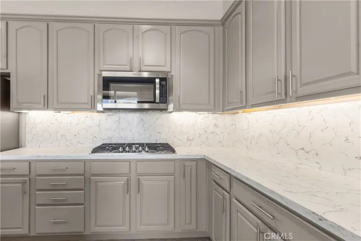 The kitchen is equipped with quartz countertops, a new double oven that includes a built-in air fryer, and a new gas cooktop. All interior cabinetry has been refinished. Additional upgrades consist of fresh interior and exterior paint, along with entirely new window blinds.