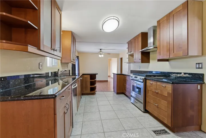 This great mobile home rests in a lovely La Verne neighborhood, and is conveniently located near the entrance of the highly sought-after Foothill Terrace 55+ senior park. The home offer a well-designed floor plan featuring a large living room with a row of windows allowing for plenty of natural light, and an inviting open dining area. The spacious kitchen has wood cabinets, granite countertops, ample cupboard space, open display shelves, tile floor, pantry, microwave shelf, double stainless steel sink, and stainless steel appliances, including the stove, refrigerator and dishwasher. The adjacent family room, with sliding glass door leading to the covered porch, is perfect for gatherings or to use as an office. The home offers a total of 2 bedrooms and 2 bathrooms, including the primary bedroom suite with a walk-in closet and a private bathroom with a large vanity, double sinks and granite countertop. Other amenities include 1,344 square feet of living space, wood laminate flooring, laundry room with washer and dryer, ceiling fans and central air and heat. The exterior space includes an inviting covered front porch, 2-car carport parking and a storage shed. The park offers two clubhouses, sparkling pool and spa, gym, library and many enjoyable social activities.