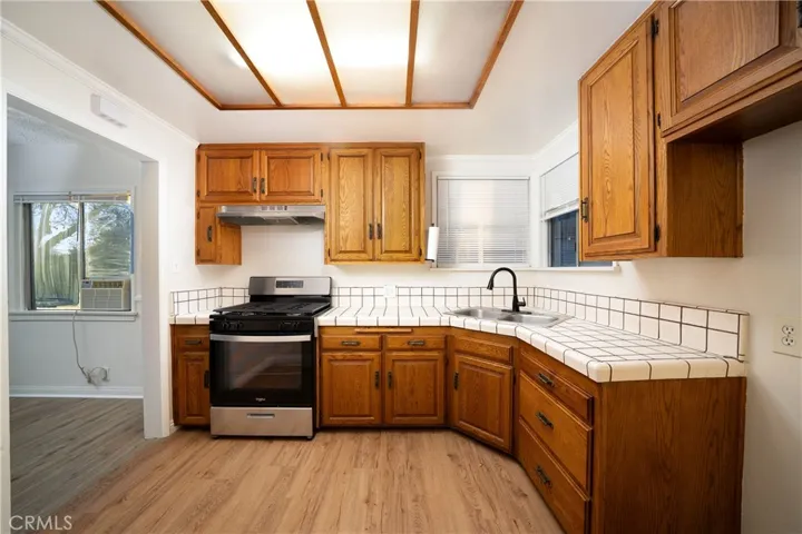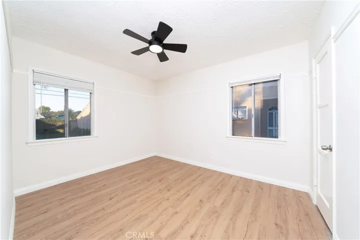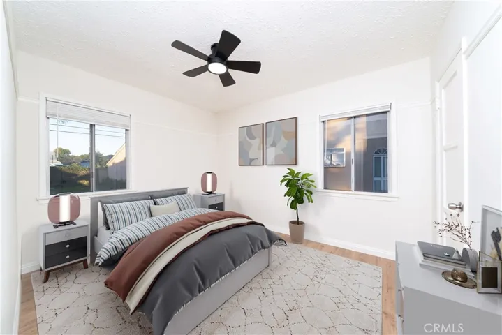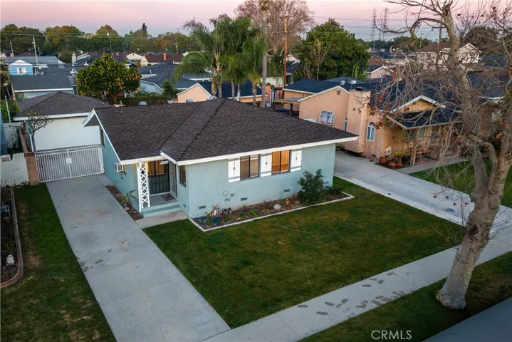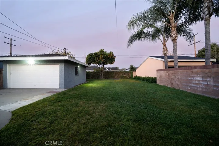 Located in the Mayfair area of Lakewood, this two-bedroom, one-bath home has been recently painted inside and out. The living room features new rigid core waterproof plank flooring, while the front bedroom includes new carpet. The bathroom has been updated with a new fan, window, and lighting, and the dining area is enhanced by a new light fixture. The kitchen offers tiled countertops, wood cabinetry, a new stove, and a new garbage disposal. An indoor laundry room with built-in pantry adds everyday convenience. Outside, the property is enclosed with block wall fencing and includes sprinklers in both the front and back yards, along with an orange tree in the backyard. The detached garage is equipped with a slide-up door, overhead storage, and a 220-volt outlet, making it ideal for the possibility of additional utility or workshop use. This home presents a solid opportunity in a desirable neighborhood.