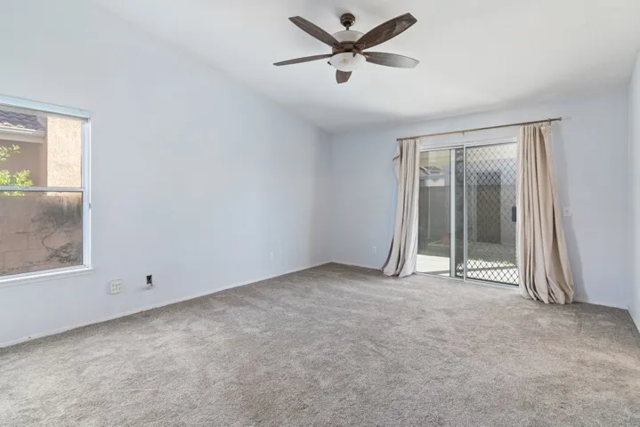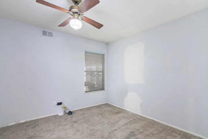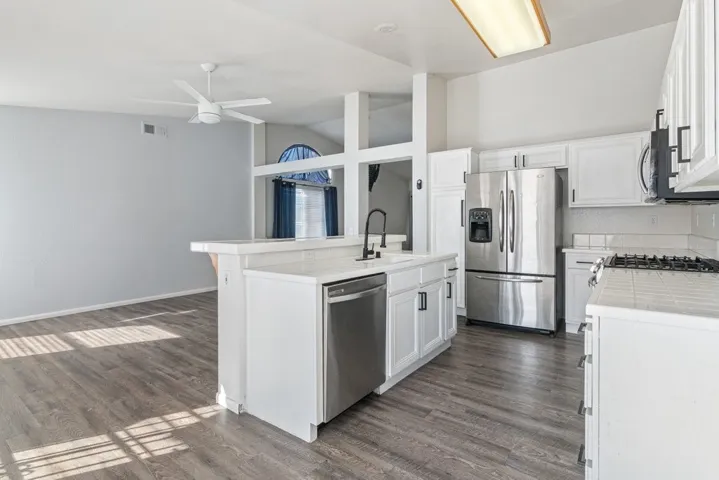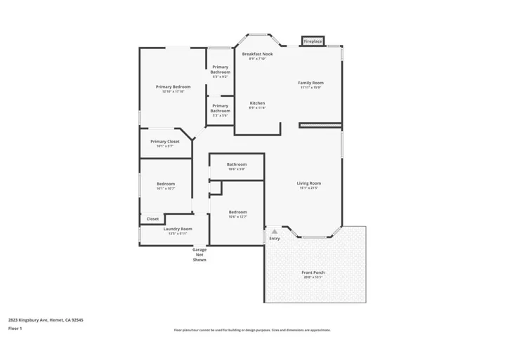 Single-story home located on a corner lot with covered front porch. Interior features open floor plan with spacious living room flowing seamlessly into the family room and kitchen, creating an ideal layout for everyday living and entertaining. The kitchen offers generous cabinet storage, a breakfast bar, and a cozy breakfast nook, perfect for casual dining. Adjacent to the kitchen, the family room features a fireplace that adds warmth and character to the space. Primary bedroom offers en-suite bathroom and walk-in closet. Realist tax shows 2 bedrooms+ den. Den was closed off and could be used as 3rd bedroom providing flexible living options. Dedicated indoor laundry room. Attached 2 car garage. Property offers comfortable living and functional space throughout.