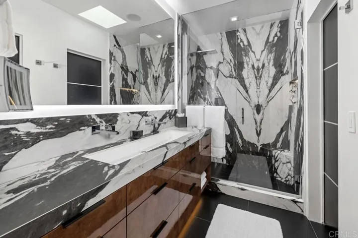Stunning single level La Jolla jewel box on a corner lot with panoramic views of the Pacific Ocean & Coastline, Mission Bay and Downtown San Diego. This impeccable custom-built residence was recently taken down to the studs and renovated with a thoughtful eye and meticulous craftsmanship to offer modern elegance for the most discerning buyer. The 3 bedroom, 3 bath open-concept retreat has mesmerizing city light views from all entertaining areas, including the 800 sf wrap around Trex deck with new outdoor kitchen, covered dining with lighting/heaters/fan and jacuzzi tub. No expense was spared with new plumbing/electric throughout, new Fleetwood windows/doors, new HVAC/furnace/water heater/water filtration system, Solar, white oak plank flooring & porcelain tile, White Panda marble fireplace, custom cabinetry & new lighting throughout plus an AV Surround System as well as a Lutron LED lighting system. The corner lot location boasts abundant natural light, gentle breezes and all new front/back yard landscape design with fruit trees, raised garden beds, outdoor shower, fencing/gates, artificial turf and putting green. The generous outdoor space provides a large canvas for gardening and entertaining, while a side-entry 2-car garage enhances the already exceptional curb appeal. A 5-star location and just minutes from world-class beaches, boutique shopping, fine dining and a variety of entertainment in La Jolla or San Diego.