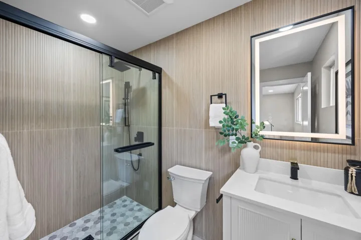 Beautifully renovated, light-filled home designed for modern living and effortless entertaining. Fresh interior/exterior paint and new luxury vinyl plank flooring flow throughout, creating a seamless and inviting atmosphere from the moment you arrive. The living room greets you with a tiled, wood-burning fireplace, recessed lighting, and an open layout ideal for both everyday living and hosting guests. The adjacent dining area provides a perfect space for gathering, while the open-concept, fully remodeled kitchen serves as the heart of the home. Featuring quartz countertops, pull-out spice rack, dual corner Lazy Susans, pantry cabinetry with pull-out shelves, this kitchen offers both beauty and functionality. The spa-inspired baths have been thoughtfully remodeled , the primary suite showcases a beautifully designed tiled shower, while the secondary bath features elegant quartz tile extending from tub surround to ceiling. Large secondary bedrooms, an oversized separate laundry and storage room. The pool-sized backyard offering endless possibilities, enhanced by the rare advantage of having no rear neighbors, providing exceptional privacy and open-space appeal. This turn-key home blends style, comfort, and functionality — a truly special opportunity.