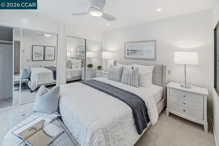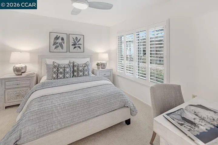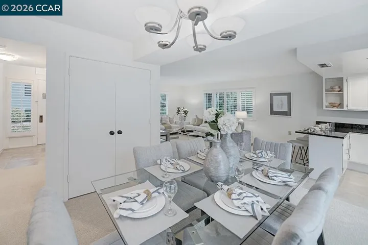 This charming level-in/single story Golden Gate model is blessed with beautiful lush landscaped views from additional windows that bring in natural light and complement your everyday lifestyle. Morning sun provides heat in the winter and cooler in the summer by the canopy of trees. End unit location provides a serine location away from the movement of neighbors. Thoughtfully updated, this home features dual-pane windows, custom shutters, central heating and cooling to each room, refreshed kitchen with stone counter tops, recessed lighting and a spa-like renovated bathroom. Open floorplan easily flows from one room to the other. Convenience meets comfort with a coveted stackable washer and dryer located in the hall closet, bedroom ceiling fans, mirrored closet doors, atrium retractable awning—just a few of the many wonderful features this home has to offer. The value of this home is supported by its premier location with a short walk to many of Rossmoor’s wonderful amenities; Golf Course, Creekside Restaurant, Event Center, Stanley Dollar Clubhouse & Pool and many more creating a healthy lifestyle. This is a home you will enjoy for years to come! Must see to fully appreciate all this home has to offer along with wonderful neighbors!