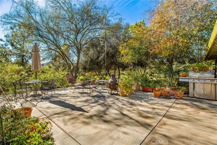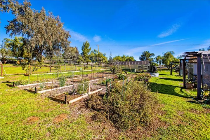 Welcome to Rocky Ranch – a rare and private retreat designed for those who value land, independence, and intentional living. Tucked away on just under 5 fully fenced acres, this exceptional property offers a warm and inviting 3-bed, 2-bath custom home spanning 2,244 sq. ft., complemented by a beautiful backyard patio, huge barn and thoughtfully developed grounds. Enter the home through the front door to a welcoming layout that blends comfort and character. To the left, a sunken living room features a large window overlooking the front porch with a coat closet to the right. Moving forward, the kitchen on the left showcases stainless steel appliances, a commercial-grade gas stove and oven ideal for large gatherings, custom 18×18 travertine flooring, butcher block countertops, and counter seating for 4— perfect for both preparation and serving. The open-concept kitchen flows seamlessly into the dining and family room, where a cast iron wood-burning fireplace with custom brick, vaulted ceilings with fans and lighting, and double French doors lead to the backyard and expansive patio with jacuzzi. The spacious primary suite on the left offers a walk-in closet, vanity, and custom walk-in shower. Behind it is a generous bonus space that could serve as a 4th bedroom or office, complete with washer and dryer, storage, and pantry. To the right of the kitchen, 2 well-sized bedrooms share a second bath featuring a custom tub/shower, vanity, and toilet. Every space reflects thoughtful craftsmanship, warmth, and functionality — a true cottage-ranch retreat designed to support everyday living. As you step onto the back patio, you will be thrust into a world full of light and natural beauty. You will find yourself surrounded by walking trails, mature trees, established gardens, and productive landscaping because this land was developed to perform. An oversized fenced-in vegetable and herb garden with greenhouse, and an abundance of producing fruit trees support year-round growing and sustainable living, while the fully fenced acreage is ideal for horses, cattle, goats, pigs, chickens, or whatever livestock vision you bring to life. Every inch of this property reflects care, foresight, and pride of ownership. Peaceful, secluded, and incredibly functional, this is a place where life slows down, systems work, and possibilities expand. You won’t just see the value here — you’ll feel it. Truly one of a kind. Prepare to fall in love with this captivating oasis!