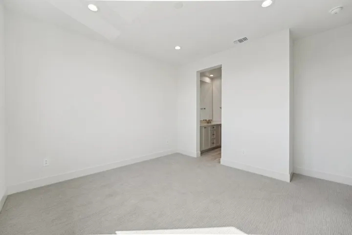 Homesite 69 at Skyline offers approximately 1,754 sq. ft. of thoughtfully designed living space across four levels and that is move-in ready! The home features a modern chef’s kitchen equipped with elegant gray Shaker-style cabinetry, upgraded quartz countertops, and premium Bosch stainless steel appliances. Luxury Vinyl Plank (LVP) flooring extends throughout the main living level, while upgraded carpet in the bedrooms adds comfort and warmth. The entry level includes a private bedroom with a walk-in closet and en-suite bath—ideal for guests or a home office. Upstairs, the third floor provides a private retreat in the primary suite, complete with a spacious walk-in closet and spa-inspired bathroom. A secondary bedroom, hallway bath, and convenient laundry closet complete the third level. The highlight of the home is the expansive fourth-floor rooftop deck with a built-in dry bar, creating the perfect outdoor living space for relaxing, entertaining, or enjoying panoramic views. Additional storage on the rooftop level adds everyday convenience. Throughout the home, premium Kohler plumbing fixtures and stylish chrome hardware lend a sophisticated touch. Views: Downtown