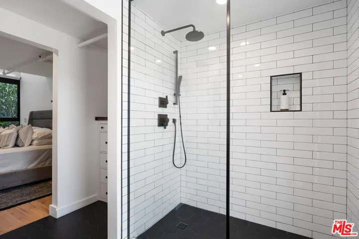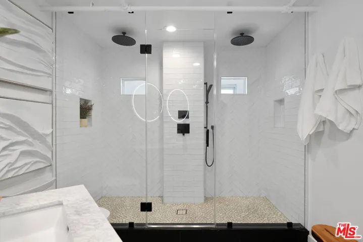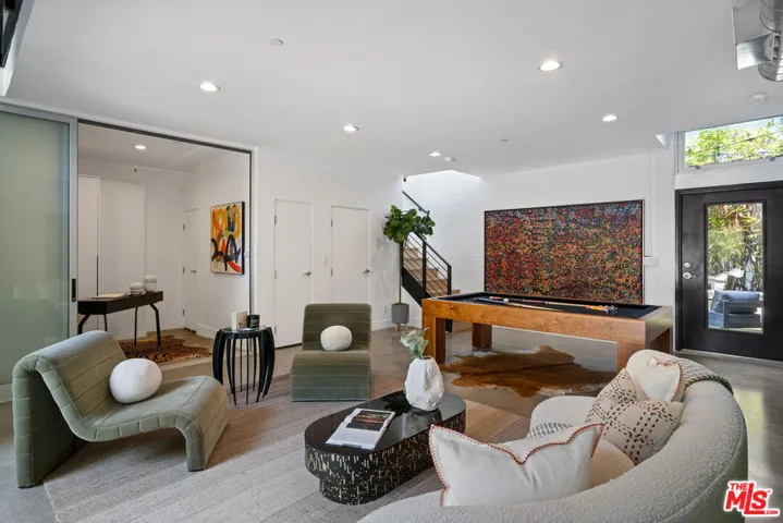 Live above it all in this impeccably designed penthouse condo that lives like a townhouse, nestled in the heart of West Hollywood. Offering over 2,100 sq. ft. of thoughtfully curated living space, this three-bedroom, three-bath residence features soaring ceilings, a striking blend of micro cement and wood floors, and elevated finishes throughout. One of the bedrooms on the first level has been converted into a custom walk-in closet but can easily be transformed back, offering flexible use of space to suit your lifestyle. The bright white kitchen is outfitted with newer appliances and opens into an airy living and dining area that flows effortlessly for entertaining or unwinding in style. Step outside to your private outdoor patio with a hot tub and outdoor shower, or ascend to the expansive rooftop deck to enjoy sweeping views from the Hollywood Hills to downtown Los Angeles. Additional highlights include rare guest parking, extra storage, and an unbeatable location near some of the city’s most iconic restaurants, nightlife, and entertainment.