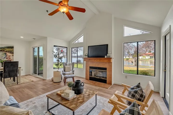 Beautiful ViEWS OF THE LAKE at California Park. This is a rare opportunity to own one of the few condos with 180 degree views of the lake. Located in the 55+ community in Sierra Sunrise, this condo is move in ready. A complete interior paint job was just completed, new carpet in the main bedroom, canned lighting throughout has been upgraded. Gas range and fridge included plus a stacked washer/dryer in the garage. A one car garage and a covered carport provide ample parking, plus there is guest parking close by. The condo also includes 1/3 ownership in a dock on the lake that is located just across the walking path. The setting outside is beautiful. You can relax in the comfort of this home and watch the birds and turtles in the lake. Easy access to walking paths that go along the lake. The condo is in the Sierra Lakeside, Sierra Sunrise and Cal Park HOA’s.