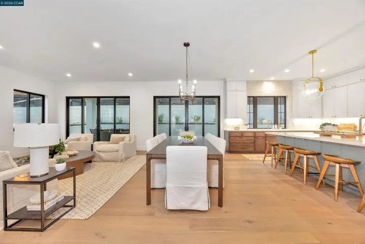 An exceptionally rare opportunity to own new construction on a .34-acre lot in Lafayette’s coveted Saranap neighborhood. Built and thoughtfully curated by Stroud Development, this 3,3989sq ft residence is designed for modern living, entertaining, and multigenerational living. The expansive floor plan offers five spacious bedrooms, five-and-one-half baths, a private office with ensuite bath or sixth bedroom, and a dedicated children’s play area. Soaring ceilings and an open-concept design create a bright, airy feel throughout. At the heart of the home, the chef’s kitchen features a large island with seating for six, quartz countertops, Brizo gold fixtures, stainless steel appliances, custom mini shaker cabinetry, and abundant storage. The eat-in kitchen flows seamlessly into the dining area and oversized family room with a custom gas fireplace. Andersen glass sliders open to a covered patio and outdoor entertaining space, ideal for effortless California living. Set on over one-third of an acre, the property offers ample space for play, relaxation, and private outdoor enjoyment. The perfect balance of tranquility and convenience—nestled in a peaceful neighborhood just minutes from downtown Lafayette and easy access to Highways 24 and 680.