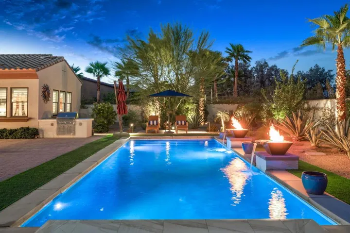 Tuscan-Inspired Toll Brothers Estate Private Casita Entrance 4 Bedrooms + Flex Room Modern Updates Resort-Style Outdoor Living 4,300+ SF Over 1/3 Acre and GORGEOUS! Rarely does an estate-style home of this scale, setting, and level of finish come to market at such a compelling value in Rancho Mirage. Welcome to Escala… with a perfect blend of luxury, elegance, and comfort.From the moment you step inside, you’re immediately captivated by the beauty and warmth that make this home both refined and inviting. Set on over one-third of an acre, this Tuscan-inspired Toll Brothers estate spans more than 4,300 sq. ft. and captures the essence of sophisticated indoor-outdoor living that defines the desert lifestyle.Soaring ceilings and a light-filled, open layout define the heart of the home, anchored by a grand great room with an elegant wet bar and walls of glass that seamlessly connect to the outdoor entertaining spaces. The chef’s kitchen is a true showpiece, featuring top-of-the-line Wolf appliances, Sub-Zero refrigeration, double wall ovens, a professional cooktop, rich custom cabinetry, and an expansive island ideal for gathering.Designed with privacy and flow in mind, the thoughtfully planned floor plan places the primary suite privately apart from the guest suites, creating a serene retreat complete with a large soaking tub, walk-in shower, and dual limestone vanities. Each interior bedroom includes its own ensuite bath for ultimate comfort. Additional living spaces include a formal dining room, a sitting area, and two versatile flex rooms… perfect for a media room, gym, or home office.The detached one-bedroom casita offers an ideal private getaway with its own living area, kitchenette, and patio.Outdoor living takes center stage with a large covered patio, built-in BBQ, fire pit, and dramatic double fire spillways that illuminate the pool, creating the perfect backdrop for unforgettable desert evenings.Exceptional upgrades include a custom saltwater pool and spa with self-cleaning features, full interior and exterior surround sound, epoxy-coated garage flooring with custom cabinetry and lighting, electric window shades at pocket doors, custom recessed lighting throughout, water-efficient desert landscaping, three A/C units, and IID power for added energy savings.Located within one of Rancho Mirage’s most desirable gated communities, Escala is centrally located near world-class golf, shopping, and dining!