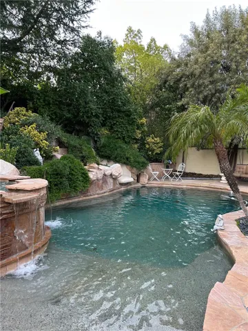Nestled in a lush tree-lined private Cul-de-Sac Oasis with No HOA and owner owned solar panels for electric. This meticulously kept home greets you with two graceful birch trees on your front lawn that lead to estate doors that welcome you in—left weather conditioned on purpose, so you pick the finish that sings to you. Resort style backyard with built-in kitchen, draped in lush green foliage and large trees offering privacy and escape. Pebble tech beach entry pool, built-in slide, hidden beside a waterfall. Pool is heated with owner owned solar, so pool is always warm and ready for a swim. Half moon shaped stone bar to set the entertaining atmosphere. Inside the home the decor is a blend of contemporary fused with transitional. Smart tech for effortless living, built in charging station, that disappears, remote control blinds, touchless faucet, remote control led lighting. Spacious chef style brand new kitchen, brand new appliances, brass burner Forno oven, wine cooler and beverage center. Room for dueling chef’s to prepare a meal. Discreetly installed movie theatre blended into a comfortable sitting room. Fully equipped gym room, perfect for you and your trainer. Unique parking, can accommodate 6 plus vehicles. Perfect location to run a home based business. Can move in quickly with comfort without the hassle of waiting for a moving truck. Homeowners are generously including hand picked curated luxury goods, inside and outside, leather couch sets, bar stools, bedroom set, kitchen essentials ,too much to list. A real turn key! Bring your imagination, and your own design, the stage has been set.