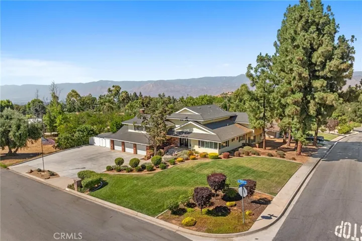 In the Highly Desirable Hills of South Redlands, along scenic Sunset Dr. your new home awaits! Walking distance to Mariposa Elementary and a short golf cart ride to Redlands Country Club, this home offers a comfortable, functional layout that facilitates full enjoyment of your home! Step through the grand double door entrance to your entry foyer (or step in from your 3 car garage) and head to one of your TWO Living Rooms. Prepare a meal in your gourmet kitchen with wrap around counters, a counter bar and a casual dining space that opens to your lower Living Room; Or enjoy the meal in your formal Dining Room or your fully covered Outdoor Dining patio. Head up the back staircase to find 2 mid-level bedrooms w/ great closets and a full bathroom. Turn the corner to a short staircase leading to your Primary Suite (1 of 2 entries). Look at that view!! The suite also offers 2 separate vanity dressing rooms, each with their own closet. The Upper Living Room (w/ fireplace and beautifully scenic balcony) has direct access stairs to the Primary Suite and from the entry foyer. The lower level private bedroom and bathroom (at the back of the house) create the perfect guest room, in-law suite or home office / studio. The backyard is an ideal place to relax, play & entertain! So much space, a large pool, covered spaces with shade, a playground, a lush greenbelt, a gas-plumbed firepit, and a fresh concrete slab w/ electricity ready to build your workshop, shed or studio. Easy access to bathroom & shower from the pool through your indoor laundry room. Need space for cars and recreational toys? (An RV? A Boat?) The 3-car garage and huge driveway has room for it all! Desirable schools, beautiful views, parks and a Country Club are just some of what makes this neighborhood so desirable! Tranquil nature surrounds you and yet easy access to the freeway is quick. “Redlands – known in 1900 as ‘The City of Millionaires’ and later as ‘The City of Beautiful Homes’ welcomes you! Founded in 1881… Redlands is a quintessential ‘big town’ with a ‘small town’ feel”. The Historic Downtown, Historic Train Station, Kimberly Crest House & Gardens, The Redlands Bowl Summer Music Festival, an active cycling community, and a wealth of great parks and trails!! Come see this truly remarkable home!!
