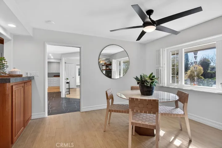 This expertly manicured single-story estate is perfectly located in an end of Cul de sac location. Impeccably maintained and expertly crafted, this homes charm starts from the street. Boasting a soft and colorful softscape, clean architectural lines, and spacious side yard parking, this Villa Park adjacent gem is a benchmark for the neighborhood. Architectural brick siding, ornate iron gates, crisp white windows with dark shutters, and custom rain gutters give this home a feeling of understated elegance the minute you walk up. Enter through quaint glass inlaid front door into a light and spacious entry. Framed with period specific stone and “original” hardwood floors, this home is the perfect mix of old word charm and modern utility! The spacious and inviting family room boasts floor to ceiling brick finished fireplace, stain grade exposed beam ceilings, etched glass sliders, recessed cans, and a great view of the immaculate back yard. Living room is spacious and open and enjoys the same etched glass sliders and backyard access as the family room. Kitchen is a dream with refinished stain grade cabinets, stone counters, SS appliances, custom tile splash, double oven, 6 burner cooktops w/ elegant hood, coffered ceilings, and sprawling counter space. The floorplan is incredibly versatile and boasts 4 beds and 3 baths in the main home and a completely self-sufficient 1/1 guest house. The guest house is complete with kitchenette, and elegantly finished bath. Separate laundry hook ups are in the garage to make this unit a stand-alone gem. Primary bedroom is spacious and inviting with backyard views, dual pane windows, and ample bath and closet space. Exterior utility closet space adjacent to the primary bath allows for plenty of room for a future reno. All bedrooms are spacious, light, and airy and enjoy ceiling fans for plenty of air circulation and flow. One of the most inviting in person features is the sprawling and warm covered patio and backyard. Expertly manicured by a caring green thumb and featuring too many fruit trees to mention, this yard is so relaxing and inviting. Previous pool was removed “with permits” to allow for a potential future separate ADU in addition to the currently attached guest house. The care and attention to detail this home boasts is unparalleled. Other incredible features include ceiling fans, potential RV access, lush landscape, fresh paint, permitted 200-amp panel, dual unit HVAC, EV charging service, and so much more!