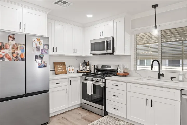 Beautifully remodeled and truly move-in ready, this stunning 1,440 sq. ft mobile home offers the perfect blend of modern upgrades and serene surroundings. Featuring 2 spacious bedrooms and 2 full bathrooms, the thoughtfully designed layout provides comfort, functionality, and ample space for relaxing or entertaining. The interior has been completely renovated, showcasing new drywall throughout, updated plumbing and fixtures, recessed lighting in every room, and stylish vinyl plank flooring. Elegant crown molding, 5-inch baseboards, and wood blinds add a refined touch, while the bright kitchen shines with timeless shaker cabinetry designed for both beauty and everyday convenience, complete with a stainless steel appliances and lets not forget the large wonderful pantry. Enjoy year round comfort with central air conditioning and heating, the convenience of side-by-side parking, and unwind on the covered side patio. Perfect for morning coffee or peaceful evenings. Ideally located next to a tranquil greenbelt, the home offers scenic views and a sense of privacy, while being just steps from the clubhouse, pool, spa, gym, and lake. Situated in Lake Park Yorba Linda, one of North Orange County’s most highly rated 55+ communities, residents enjoy a quiet, resort-style setting with plenty of community activities or the option for easy, peaceful living. The location is within walking distance to shopping and dining and offers convenient access to major freeways. A beautifully upgraded home in a prime location where comfort, style, and serene living come together. This is one you must see!