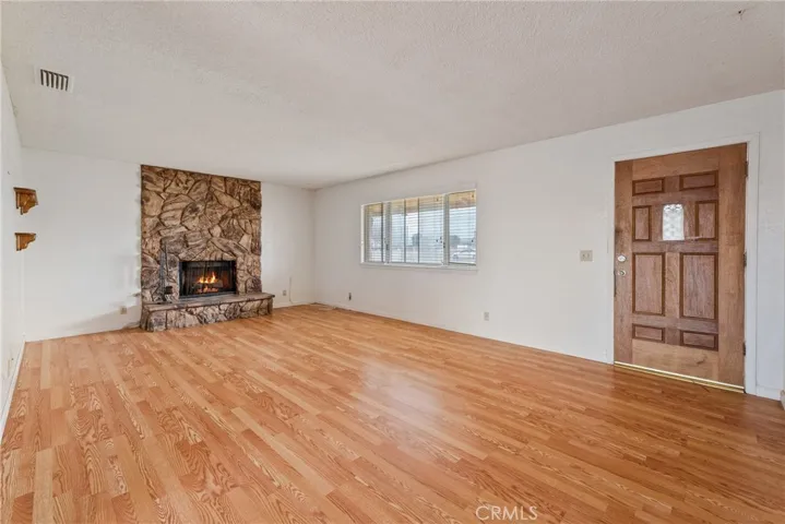 The separate family room is warm and inviting, highlighted by a fireplace for cozy evenings at home.