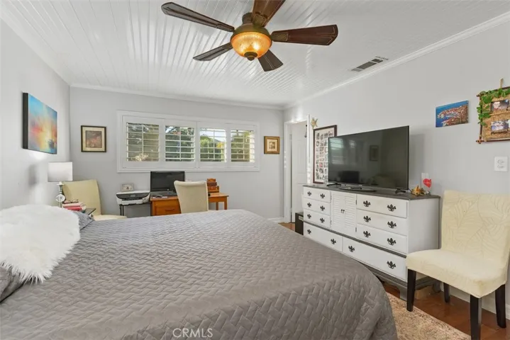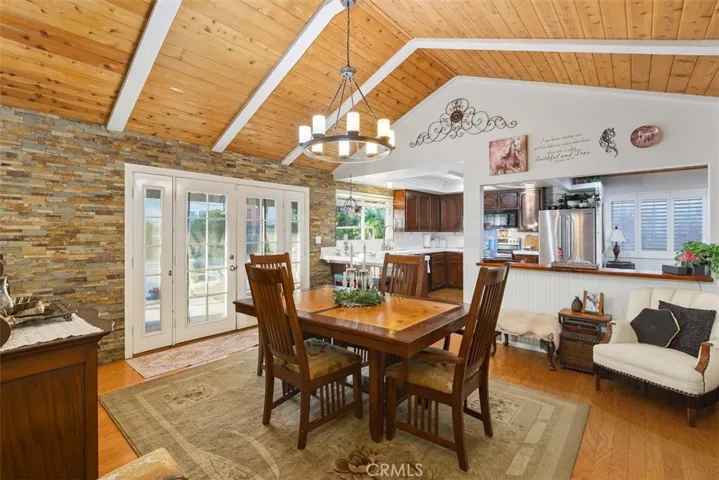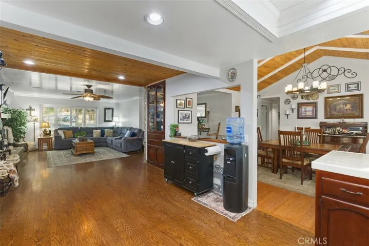 Experience the quintessential Canyon Lake lifestyle in this beautifully appointed single-story residence. This home perfectly balances luxury and utility, featuring a private saltwater pool, fully paid solar, and over 60 feet of gated RV/boat parking. Situated on a prime corner lot with manicured landscaping, the home welcomes you through double entry doors into a spacious, open-concept interior. The floor plan is designed for effortless entertaining, connecting the great room, dining area, and kitchen. High-end finishes abound, from elegant stone and wood accents to custom wainscoting and charming beadboard ceilings. The primary suite serves as a true retreat with a renovated bath, while two additional guest rooms and an indoor laundry room offer convenience for every day living. Outdoors, the backyard is an entertainer’s dream, featuring a covered patio and a sparkling pool framed by mature privacy hedges. Located within the exclusive, guard-gated community of Canyon Lake, residents enjoy unparalleled amenities including golf, private beaches, equestrian facilities, and world-class boating.