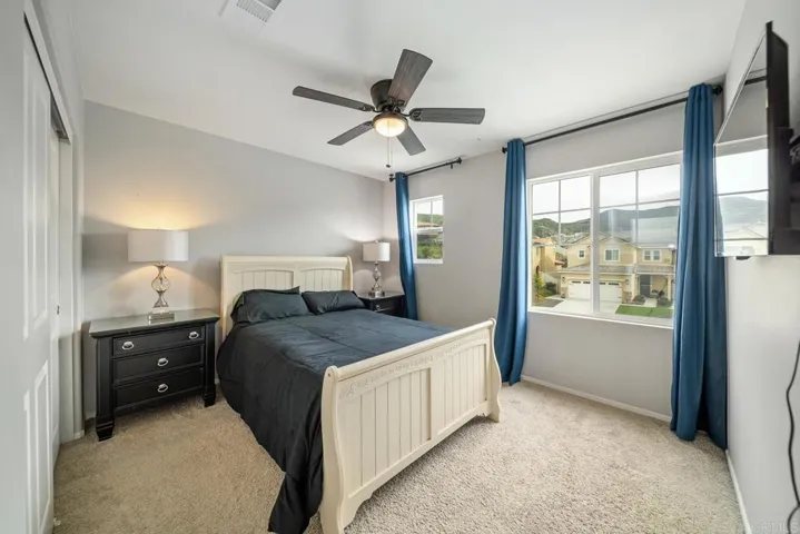 Welcome to Oakmont at Horse Creek Ridge! Step inside an inviting, light-filled home with PAID solar and a show-stopping kitchen. Beautifully maintained and designed for flexibility, the main level offers an open, multifunctional living space plus a convenient downstairs bedroom, perfect for guests, a home office, or multigenerational living. Upstairs, retreat to the spacious primary suite with a walk-in closet and an oversized primary bath. Two additional bedrooms, an upstairs hall bath, and a dedicated laundry room complete the second level, washer and dryer included! A large loft upstairs adds even more room to relax, work, or play. With so many windows, natural light pours in throughout, and special touches like the wood slat wall in the dining area and wainscoting in the loft show pride of ownership. Outside, the easy-care backyard features turf and a pergola, enhanced by majestic, lush landscaping that creates the ultimate private retreat for effortless entertaining and everyday enjoyment. Enjoy gorgeous views of rolling green hills beyond the glass fence, with the greenbelt park as your serene backdrop and these views can be enjoyed from multiple areas inside as well. Horse Creek Ridge delivers lifestyle: playground around the corner, dog park steps away, incredible clubhouse with a resort-style pool, trails, sports park, and more. Minutes to I-15, this community blends comfort, convenience, and outdoor adventure year-round.