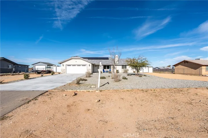 Beautifully maintained half acre ranch-style home offering 3 bedrooms and 2 bathrooms, highlighted by quartz countertops and an open-concept kitchen with a large center island ideal for casual dining and entertaining. The spacious bedrooms feature walk-in closets, and indoor laundry adds everyday convenience. The low-maintenance desert-landscaped front yard creates great curb appeal and leads to a two-car garage. RV ACCESS on both sides of the home provides excellent flexibility, while the paved backyard offers plenty of space for a boat, recreational toys, or additional vehicles. This home offers PAID OFF SOLAR. This move-in-ready home combines comfort, functionality, and versatility—an opportunity you won’t want to miss.