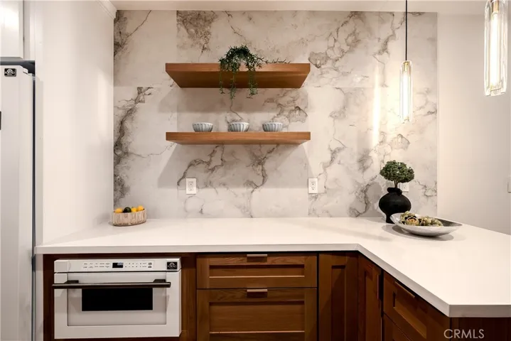 Inside, every inch has been intentionally transformed. Wide-plank floors ground the space. A European-inspired kitchen anchors the home with clean lines, modern cabinetry, quartz countertops, and professional-grade stainless appliances. The open living, dining, and kitchen layout feels social but not loud. It’s the kind of space that works just as well for a quiet weeknight meal as it does for hosting friends over natural wine and good conversation.
