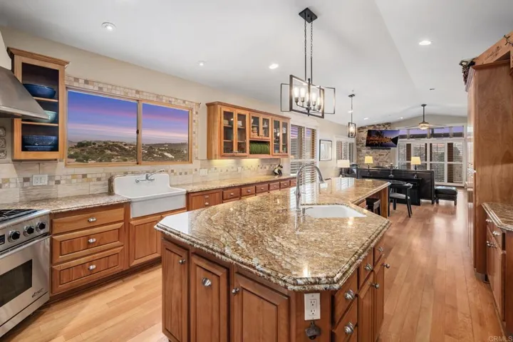 The seller will entertain offers between $1,649,000 and $1,849,000. Discover unparalleled serenity and stunning views on this nearly 9-acre equestrian estate, perfectly situated adjacent to county land and the sprawling 650-acre Simon County Preserve. This estate is enhanced by a fully owned 45-panel solar system, producing vineyards with Merlot, Zinfandel, Sangiovese, Cabernet Sauvignon, and Cabernet Franc grapes, along with 20 olive trees and a variety of fruit trees, including peach, apricot, apple, and lemon. With direct access to miles of scenic trails for horseback riding and hiking, this property offers a unique lifestyle that seamlessly blends outdoor adventure with refined living. This custom-designed home is a true entertainer’s dream. It boasts a gourmet kitchen with an expansive granite island, a professional-grade 6-burner Dacor range, a warming drawer, and a double-drawer dishwasher—all complemented by breathtaking views. The home’s sweeping patios, indoor/outdoor bar, and multiple entertaining spaces create the ideal setting for gatherings or peaceful relaxation. While offering the tranquility of rural living, this property is conveniently located just five minutes from downtown Ramona, 25 minutes from Poway, and approximately 45 minutes from San Diego’s world-class beaches. Surround yourself with the charm of a vibrant community known for boutique wineries, local restaurants, unique shops, vineyards, and orchards. A short drive away, you’ll find Julian, famed for its delightful apple pies. Embrace a lifestyle of luxury, sustainability, and natural beauty. Your personal paradise awaits!