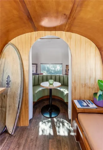 And then… there’s The Pickle. — ICONIC. VINTAGE. UNFORGETTABLE. Parked right on the property is the fan-favorite 28’ vintage Airstream known as “The Pickle.” A beloved showstopper at Orange County events, this dreamy little trailer is fully transformed into a one-of-a-kind lounge space. This thoughtfully converted Airstream offers warm wood interiors, built-in banquette seating, built-in seating areas, a bar space with counter seating, and ambient lighting. Use it as a guest retreat, cocktail lounge, coffee bar, creative studio, work-from-home hideaway — or all of the above. There is truly nothing else like it.
