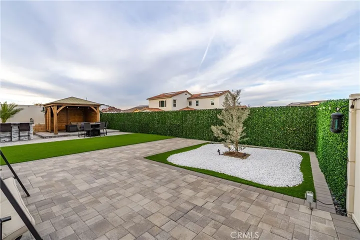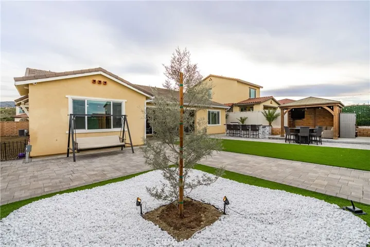 The heart of the home is the gourmet kitchen, complete with a premium Bertazzoni range, double oven, and ample counter and cabinet space. Recessed lighting enhances the open layout, creating a bright and inviting atmosphere ideal for everyday living and entertaining. The spacious primary suite offers a spa-like bathroom with dual sinks and a massive walk-in closet, while a secondary bathroom also features double sinks for added convenience. The family room has been thoughtfully transformed into an in-home theater, complete with a built-in surround sound system for an immersive viewing experience. Step outside to a beautifully designed backyard featuring a covered gazebo, privacy fencing, outdoor lighting, a large grassy area, and a dedicated outdoor cooking space, perfect for gatherings and relaxing evenings. With modern upgrades, fully paid solar, and inviting indoor-outdoor living, this home delivers exceptional value in a desirable Palmdale location.