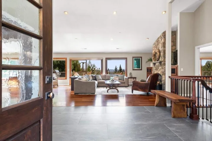 YOUR TEE, POOL & SPA GETAWAY! This gated, custom estate sits at the edge of one of the most beautiful, wild and natural experiences of the SC Mountains. Savor indoor/outdoor living, beautiful southern exposure and spectacular sunsets over the valley. Situated on 3.6 acres of redwood forest, this property offers privacy and magnificent views. The refined elegance of this two story home features hardwood floors throughout, 2 primary suites, with one on the ground floor, 1200 sq ft of new decking, a chef’s kitchen, an open, airy great room and vaulted ceilings. Relax in the infinity-edged pool or perfect your swing on the 60-yard par 3 style golf practice hole with elevated tee boxes, targets, and hazards. Terraced gardens with drought-resistant plants, fruit trees, and vegetable gardens which are a sanctuary of peace and inspiration. With 3623 sq ft of living space, this home boasts 4 oversized bedrooms and 3 full baths, 2 half baths, several of which were recently renovated. Low maintenance fire-resistant James Hardie lap siding and 40-year Elk roofing ensure durability. Located in the award-winning Los Gatos school district: Loma Prieta, CT English & Los Gatos High. Just 10 min to the 17 corridor, 20 min to downtown LG, 25 min to ocean and 30 min to the SJ airport.