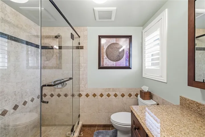 The home features four bedrooms total, including three bedrooms upstairs and one bedroom on the lower level, ideal for guests, a home office, or multigenerational living. One upstairs bedroom has been transformed into a high-end custom walk-in closet with built-in organizers. The spacious primary suite serves as a private retreat, complete with a beautifully remodeled bathroom.