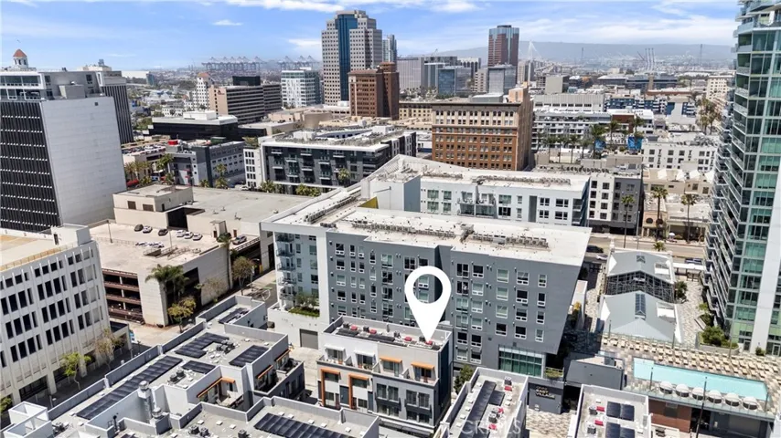Experience the ultimate in contemporary urban living at 206 Alamo Court, a stunning 4-story townhome in the exclusive gated Huxton community. This thoughtfully designed residence offers a sustainable, high-tech lifestyle in the heart of Long Beach’s vibrant East Village Arts District. Level1:Features a spacious, oversized one-car garage with direct access and additional storage. It is pre-wired for a 220V electric vehicle charger. Level 2: The home’s social center, featuring an open-concept layout that seamlessly connects the modern kitchen, dining area, and living room. This floor also includes a convenient half-bathroom. Level 3: A dedicated floor for comfort, housing the private master bedroom suite and a laundry closet with a stackable washer and dryer. Level 4: Features a second bedroom with its own private balcony. Includes owner-owned solar panels for energy efficiency.Sale includes all kitchen appliances and the stackable washer/dryer. Close to trendy coffee shops, diverse restaurants, art galleries, and boutique shopping and only minutes away from the beach. Convenient access to Metro Blue line and major freeways!