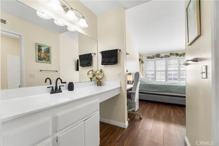 The primary suite offers generous space, a private bathroom, and a large walk-in closet. Both bedrooms are well-sized, and the home includes in-unit laundry with a washer and dryer conveniently located inside the unit.