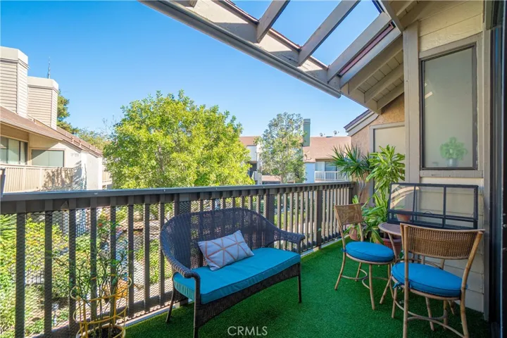The large living area features an open layout with abundant natural light and sliding glass doors that lead to an oversized private balcony, perfect for relaxing or entertaining. The balcony also includes a convenient outdoor storage closet. The kitchen opens seamlessly to the living and dining areas, creating a comfortable and inviting flow.