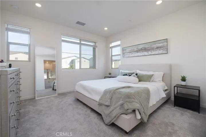Welcome to Neuhouse Community by Landsea of Ontario Ranch, a posh neighborhood prized for its abundant amenities designed for vibrant living! Enjoy the pristine park, swanky pool house that is an aquatic oasis, dog park for large and small fur babies, a sophisticated tot lot, open air fitness stations, expansive covered picnic patio with grilling stations, and much more! Built in 2022, 3610 E. Pollack Street #4 is a chic, two-story residence featuring a contemporary aesthetic of clean lines and open living space. A sleek modern design defines the white kitchen with a prominent breakfast island, stainless steel appliances, and stylish herringbone tile back-splash. You can appreciate a seamless transition between the kitchen and living room that creates an inviting, airy space for cooking and socializing. The dining area features a sliding glass door to the patio, allowing for easy Al Fresco entertaining under the stars. Relax in the spacious primary suite, complete with a walk-in closet, en-suite bathroom, shower with seating ledge, private toilet room door and dual sinks. Sophisticated style meets modern intelligence in this solar-powered home. You get the full benefit of the seller’s investment with paid off solar panels and can enjoy reduced utility costs from day one! More appealing items include recessed lighting, dual pane windows, custom window coverings, upgraded thicker carpeting, a second level laundry room – and all household appliances are included! The 2-car attached garage is finished. This home is ready to move into and perfect for your fun loving, active So Cal lifestyle! Located near the new Ontario Sports Empire Complex, massive new 200 acre sports and entertainment district date of completion Fall 2026 for all the sports enthusiasts!