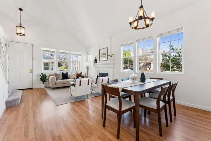 This beautifully updated single-family home sits in one of Dublin’s most commuter-friendly neighborhoods, offering vaulted ceilings, abundant natural light, and a flexible floor plan designed for today’s lifestyle. Step inside to a dramatic entry with soaring vaulted ceilings and an open spindle staircase. The living room features a cozy gas-burning fireplace and flows effortlessly into a bright dining area—perfect for gatherings. The updated kitchen shines with white cabinetry, granite countertops, and stainless steel appliances. Enjoy movie nights in the family room with built-in speakers while the remodeled downstairs bath and indoor laundry room add thoughtful convenience. Upstairs, the light-filled primary suite offers a peaceful retreat with vaulted ceilings, a walk-in closet with built-in storage, and a spa-inspired bath featuring dual sinks, a soaking tub, and a separate shower. Two additional bedrooms, generous hall cabinetry, and an updated full bath provide comfort and privacy for family or guests. The backyard is perfect for entertaining with a spacious patio, perfect for family gatherings. Prime commuter location with top-rated schools and minutes from parks, dining, shopping, freeways, and BART. Low HOA & Low Property taxes! Open Sat & Sun 2-4