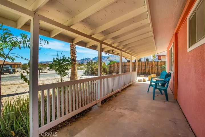 This home is turn-key and full of charm. This fully furnished 1-bedroom, 1-bath home is ready for you to move right in or start generating income. Offered fully furnished including a hot tub and all kitchen appliances, this home makes desert living effortless. Inside, the layout feels surprisingly spacious, featuring durable tile flooring throughout and a bathroom with a shower/tub combo plus a convenient linen closet. Home offers an energy-efficient mini-split heating and cooling system. Providing zoned climate control, allowing individual rooms to be independently heated or cooled for enhanced comfort and reduced energy costs. This ductless system offers quiet operation, improved efficiency. As you step outside and enjoy the beautiful wraparound covered patio, perfect for morning coffee or evening relaxation. The spacious backyard offers stunning mountain views, partial wood fencing for privacy along with chain-link fencing, and a covered shed housing the washer and dryer. A fire pit creates the perfect setting to stay warm while stargazing under the desert sky. Great for entertaining or relaxing solo. Ideally located the chocolate drop area, this home offers convenient access to the best of local amenities and desert living. Just minutes from downtown 29 Palms, enjoy nearby popular dining spots, coffee shops, breweries, and local favorites. Everyday conveniences such as grocery stores, banks, pharmacies, and gas stations are all close by along 29 Palms Highway. Outdoor enthusiasts will love the easy access to the north entrance of Joshua Tree National Park, as well as nearby parks, trails, and community recreation areas. The property is also near local schools, the public library, Theatre 29, and seasonal community events making it a great location for both full-time living, weekend escapes, or an investment property.