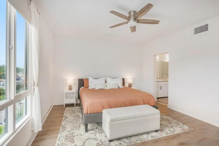 Modern 3-Bedroom Townhome with Rooftop Deck & Prime Location. Built in 2022, this light-filled and stylish 3-bedroom, 2.5-bath townhome combines modern convenience with thoughtful design. Featuring an open floor plan with soaring 12’ ceilings, LVP floors throughout, and recessed lighting throughout, this home offers a bright and airy living space perfect for both relaxing and entertaining. The gourmet kitchen boasts shaker-style cabinetry, quartz countertops, and stainless steel appliances—ideal for home chefs. A spacious private front patio provides a welcoming entry, while the spectacular rooftop deck is the crown jewel—plumbed for gas and power, ready for BBQs, entertaining, or simply taking in stunning panoramic views. Additional highlights include: central A/C and ceiling fan for year-round comfort, primary custom closet and raised panel doors, slider vanishing screen, convenient side-by-side laundry, direct-access 2-car garage with built-in storage & ceiling racks, powder room for guests, low HOA dues. Perfectly situated near major freeways, top-rated schools, downtown, restaurants, parks, the waterfront, and the world-famous San Diego Zoo, this home offers unbeatable access to everything San Diego has to offer. Don’t miss this rare opportunity to own a newer-build, move-in ready townhome in the heart of the city.