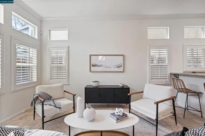 Welcome to this beautifully upgraded home featuring a bright, open layout and thoughtful design throughout. Step inside to find a formal living and dining area with a cozy fireplace; perfect for entertaining or relaxing evenings in. The spacious kitchen boasts granite countertops, stainless-steel appliances, and a casual dining nook that flows seamlessly into the large family room. The upper level offers three spacious bedrooms along with a flexible fourth bedroom perfect for an office, playroom, or bonus family room. A separate office alcove provides an additional quiet workspace or study area. The backyard is fully landscaped and designed for outdoor living, complete with a beautiful pergola, patio, generous lawn area, and storage shed. One of only two homes in the community to feature a gated courtyard driveway, this property offers both privacy and charm. Just minutes from downtown Walnut Creek, BART, shopping, dining, and major freeways, this home delivers everyday convenience in a prime location. Even better, Buena Vista Elementary is right around the corner making morning drop-offs effortless for busy families. A perfect blend of comfort, convenience, and style.