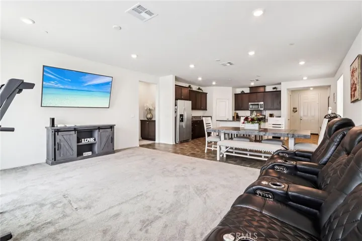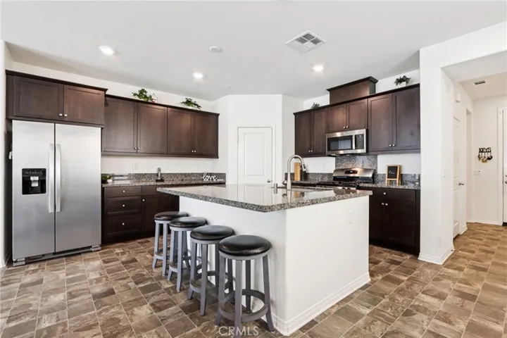 Welcome to this stunning, nearly new home in the highly desirable Saddlepoint Community, built in 2022 and thoughtfully designed with modern living in mind. Offering 2,201 sq ft, this 3-bedroom, 2-bath home features a bright open-concept layout that flows effortlessly from room to room. The heart of the home is the stylish kitchen, showcasing espresso cabinetry, recessed LED lighting, a walk-in pantry, and a generous kitchen island with bar seating for four—perfect for entertaining or everyday gatherings. The washer and dryer (less than one year old) and refrigerator are included, along with TVs and mounting brackets, making this home truly move-in ready. The spacious bedrooms provide comfort and flexibility, while the primary suite impresses with a large walk-in closet and a step-in shower in the primary bathroom. Additional highlights include a 3-car garage, paid solar with 9 panels, and drought-tolerant landscaping for low-maintenance outdoor living. Residents of Saddlepoint enjoy access to a community center featuring a pool, hot tub, and playground, adding to the lifestyle appeal of this exceptional home. Modern, efficient, and beautifully upgraded—this is Saddlepoint living at its best.