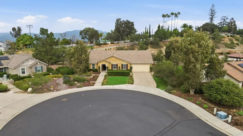 This wonderful single-level home, once the builder’s showcase model, sits proudly on an oversized cul-de-sac lot. The home welcomes you with a freshly painted exterior that shines with curb appeal. Inside, you’ll find four spacious bedrooms, including a primary suite with its own private retreat, dual walk in closets, and a luxurious roman tub—perfect for unwinding at the end of the day. The open concept floorplan, features a prominent kitchen island appointed with a high top seating area and rich cabinetry directly adjacent to the flexible living space. The oversized two-car garage offers abundant storage, while the generous backyard provides endless possibilities for entertaining, gardening, or simply enjoying the outdoors. This gated community adds even more value with secured on-site RV parking, giving you peace of mind with added convenience. Located in the desirable Shady Grove community, this home is just steps away from the neighborhood’s parks, tennis and basketball courts, walking trails, along with easy access to everyday Fallbrook amenities—making it the perfect blend of comfort, style, and convenience.