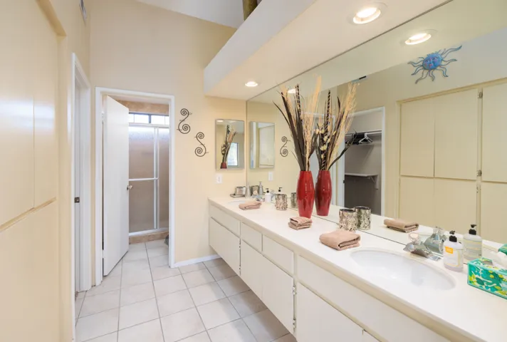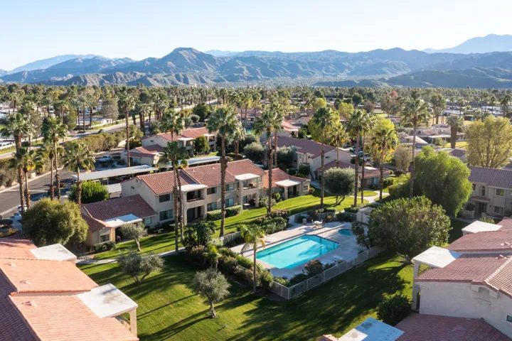 Welcome to resort-style living in the gated community of Cathedral Canyon Country Club. This furnished upper-level 2 bedroom, 2 bath condo offers a desirable split floor plan, with the primary suite on one side and the guest suite on the other, providing privacy and comfort for owners and guests alike. The living areas feature tile flooring, while both bedrooms are carpeted for added warmth and comfort.The kitchen is finished with granite countertops and comes fully equipped, including a coffee maker, electric wine opener, and everyday essentials, making this home truly move-in ready. A convenient in-unit washer and dryer closet adds to the ease of living.Step outside to your private balcony overlooking the pool, complete with a barbecue grill, ideal for relaxed desert evenings and entertaining. Light-filled and well laid out, this home is perfect as a full-time residence, seasonal retreat, or investment opportunity.Cathedral Canyon Country Club is known for its lush grounds and resort-style amenities, including an 18-hole championship golf course, multiple pools and spas, tennis courts, and a clubhouse with dining and social activities. Conveniently located near shopping, dining, entertainment, and just minutes from downtown Palm Springs, this community offers an active yet relaxed desert lifestyle.