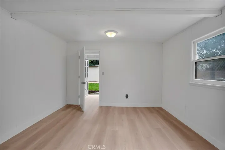 Welcome to this beautifully refreshed Northridge property, where classic charm meets modern upgrades throughout. This inviting home features all-new luxury vinyl flooring, updated lighting, fresh interior and exterior paint, a completely new kitchen, all new interior doors, and stylishly refreshed bathrooms, creating a turnkey feel you’ll love. Thoughtful improvements extend to the roof, electrical system, AC and owned solar panels installed in 2015, offering peace of mind and energy savings. Inside, the main living areas include a light-filled living room with a cozy corner fireplace open to the dining room, and new galley kitchen with white shaker cabinets, quartz countertops, and stainless-steel appliances, with direct side-yard access. Adjacent to the living/dining rooms, a step-down bonus room with extra-large windows and sliding glass doors opens to the backyard, inviting indoor-outdoor living. There are two generous-sized bedrooms in the main house—one boasting an oversized walk-in closet—and a beautifully refreshed full bathroom featuring separate tub and shower. Step outside to your spacious backyard with patio area, sparkling inground pool, and open lawn area with plenty of potential to create your ideal outdoor oasis. Beyond the pool is a generous storage shed, and direct access to private guest quarters with a separate bedroom (permitted as storage room) and 3/4 bath connected to the one-car garage with access off the alley—perfect for guests or work-from-home space. Set in the desirable San Fernando Valley community of Northridge—known for its relaxed suburban vibe, proximity to Northridge Fashion Center’s extensive shopping and dining options, beloved local eateries like Brent’s Deli, nearby parks and recreation, including Dearborn and the Northridge Recreation Center for sports and picnics, plus quick access to major freeways—this home delivers comfort, convenience and lifestyle in one exceptional package.