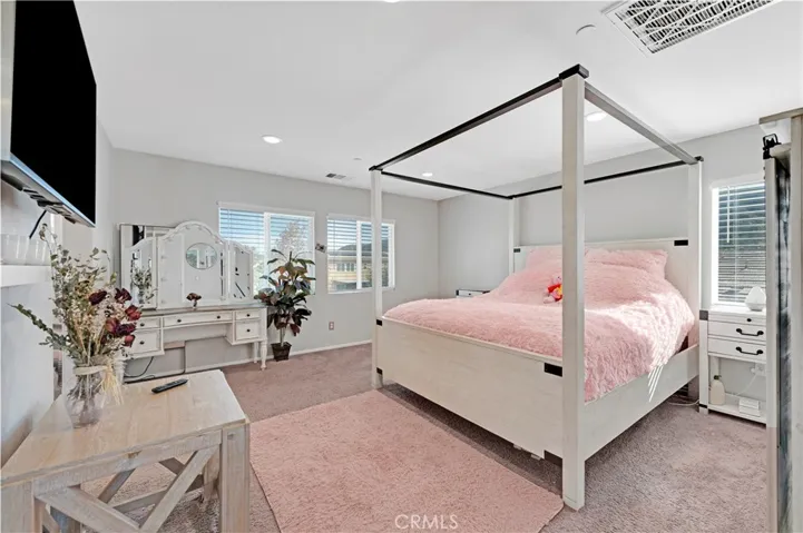Welcome to this stunning Winchester home, ideally situated on a quiet cul-de-sac with breathtaking mountain views. Featuring 4 Bedroom & 3 Bathroom, including a convenient downstairs Bedroom & full Bathroom, this home offers a versatile & functional floor plan perfect for multi-generational living or guests. Set on a large lot with great RV potential, the property is enhanced by vinyl fencing, several fruit-producing trees & a spacious backyard designed for both relaxation & entertaining. Enjoy outdoor living under the expansive patio with an Alumawood patio cover—perfect for year-round enjoyment. Inside, you’ll find laminate flooring, ceiling fans, upgraded fixtures & a bright, open-concept kitchen complete with pantry & stainless steel appliances. The spacious primary suite serves as a private retreat, featuring dual sinks & large walk-in closet. This home is packed w/modern upgrades, including PAID OFF SOLAR, a tankless water heater, whole house fan, fire sprinklers throughout, security system & Ring doorbell + cameras. With energy efficiency, thoughtful upgrades, a prime location & NO H.O.A…this exceptional home truly has it all!