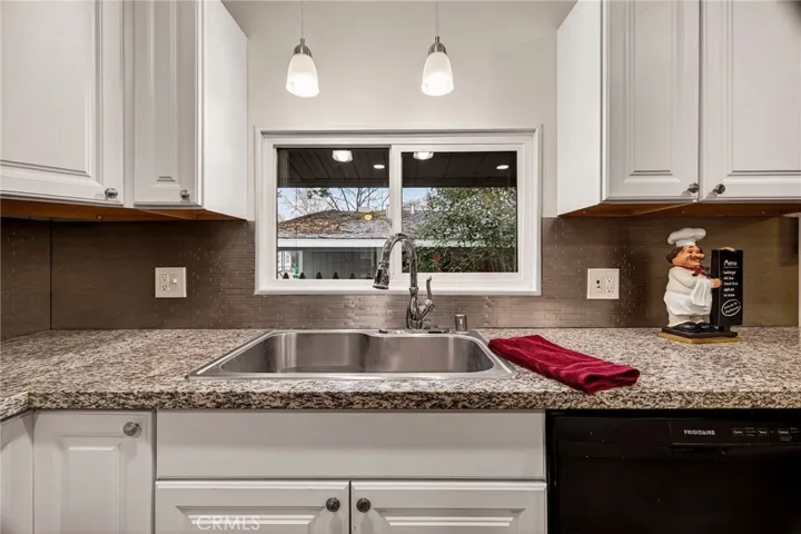 The open layout features a standout kitchen with granite countertops, beautiful cabinetry (including a lazy Susan), a stylish tile backsplash, quality black finished appliances, and an over-the-range microwave. The kitchen looks onto a separate family room, offering the perfect blend of open concept living with defined spaces. Light and bright living and dining areas are enhanced by multiple windows, plus a built-in in the dining area for added charm and storage.
