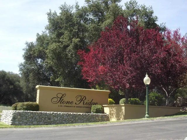 HIGHLY DESIRABLE WITH BEAUTIFUL VIEWS SUNRISE TO SUNSET, SPACIOUS COVERED DECK, & GARAGE! Discover this cozy property in the 55+, LAND OWNED, RETIREMENT COMMUNITY of STONE RIDGE, nestled in the countryside of NE San Diego County near boutique wineries and a popular Glider Airport. This move-in-ready home offers comfy living, with unique details in the remodeled Kitchen, featuring a large island with built-in wine cooler, a hanging rack for crystal stemware, new cabinets including soft-close “hidden trash drawer”, a farmhouse sink, 5-burner range, and 3-door counter depth refrigerator, as well as new washer & dryer. Under foot, find new laminate flooring in living areas, with plush carpet in bedrooms. Additionally the water heater was replaced in 2022. New roof and A/C installed in 2023. The large deck invites outdoor living & entertaining, and alongside, a concrete patio is perfect for your hot tub & star-gazing. Find the fully fenced yard pet friendly, and ideal for gardening with irrigation system installed. Try herbs, veggies, your favorite tomatoes, even strawberries! In addition to the oversized, 1-car garage, find a garden shed with storage and work shop space. A MUST SEE…SCHEDULE NOW! FURNITURE NEGOTIABLE. SELLER OPEN TO RENT BACK. Stone Ridge is an active community with Clubhouse swimming pool & spa, social events, and fishing lake. WARNER SPRINGS offers clean skies, 4 seasons with fall colors & light snow, hiking trails, antiquing, and more. Only 30 minutes to Temecula for major shopping, medical offices & hospital, and restaurants.