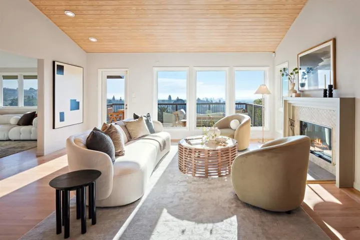 Sweeping, unobstructed views of San Francisco, the Bay, and the Golden Gate Bridge set the tone for this sophisticated Rockridge retreat at 6189 Contra Costa Road, where architecture and landscape come together. A private entry garden framed by lush greenery and custom woodwork creates a tranquil first impression. Inside, nearly every room is designed to showcase the dramatic views of the Bay, San Francisco and bridges, including the Golden Gate Bridge. Enjoy vistas from two expansive decks, the sun-filled living room, den, landscaped garden, and the serene primary suite. Oversized glass windows and doors flood the interiors with natural light and open directly to the decks for effortless indoor-outdoor living & enjoyment of the iconic Bay Area scenery. The renovated chef’s kitchen anchors the home for both everyday living and entertaining, featuring designer finishes, premium appliances, and island seating, while refinished hardwood floors bring warmth and elegance throughout.The primary suite is a true haven, featuring a private view balcony, fireplace, and a spa-like steam shower. Generously sized, light-filled bedrooms, along with an attached two-car garage, oversized finished storage, and a dedicated laundry room, provide exceptional comfort and convenience.