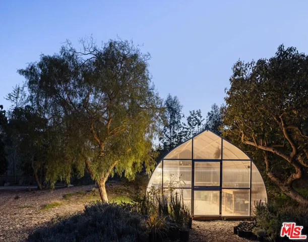 A RARE OPPORTUNITY TO BUILD A LEGACY ESTATE IN BONSALL CANYON. Set across nearly 10 acres and two parcels in iconic Bonsall Canyon, this regenerative farm presents an extraordinary opportunity to create a visionary Malibu compound just minutes from Zuma Beach. The property includes approved MARMOL RADZINER plans for three greenhouses totaling approximately 10,000 sq. ft., plus a 300 sq. ft. courtyard, offering a compelling foundation for future development, expansion, or a design-forward agricultural estate. A restored mid-century modern residence ideal as a guest house or interim home features walls of glass, high-beamed ceilings, artisan tile and sinks, hardwood floors, and a large stone fireplace, with seamless indoor-outdoor living. Wellness amenities include a sauna, ice bath, and outdoor tub and shower, along with rainwater collection. Additional structures include a detached guest house/apothecary (currently used as a private office), a detached kitchen for entertaining or education, and an artist/writer’s studio overlooking the land. The grounds are a fully realized ecosystem, highlighted by an expansive orchard of 800 fruit and nut trees, including avocados, macadamia nuts, apples, pears, peaches, plums, apricots, citrus, pomegranates, cherimoya, and more. A seasonal creek winds through the property beneath mature sycamores and oaks, with the land thoughtfully restored and maintained without chemicals. Agricultural and equestrian infrastructure includes two large greenhouses home to the family-run Zuma Orchids since the 1970s, corrals, storage sheds, and a flat pad on the upper portion of the property, offering further potential. For decades, writers, thinkers, artists, and dreamers have been inspired by this truly transformative property.