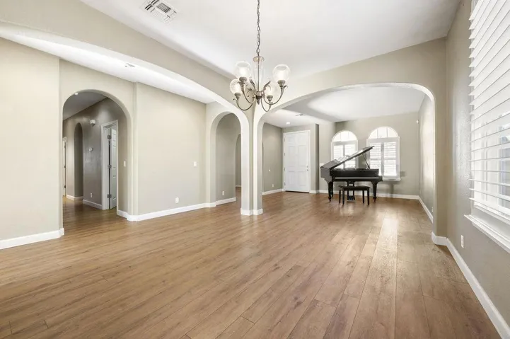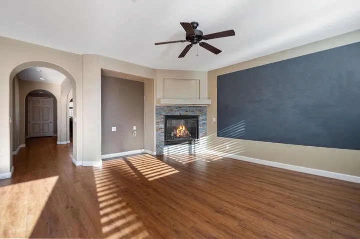 This immaculate 3-bedroom, 2-bathroom home in the desirable Greenhills gated community offers 2,269 sq ft of move-in-ready living space. Built in 2006, the home features a formal living and dining area leading into a spacious great room with a stone fireplace. The open kitchen boasts granite countertops, a center island, a gas range, and a microwave. Luxury wood vinyl flooring and plantation shutters enhance the home’s elegance. Step outside to a private backyard with stamped concrete, cement walkways, and a stunning gazebo – ideal for entertaining. Residents enjoy access to community amenities, including a pool, clubhouse, and more. With a 3-car garage and central A/C, this home combines comfort and style in a sought-after location. Don’t miss out on this exceptional opportunity!