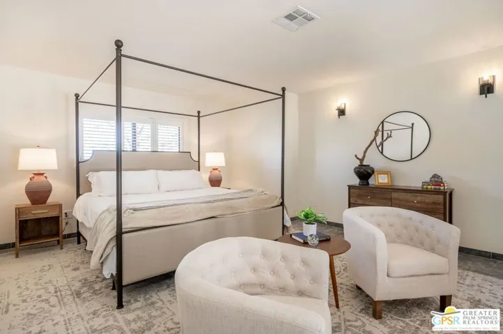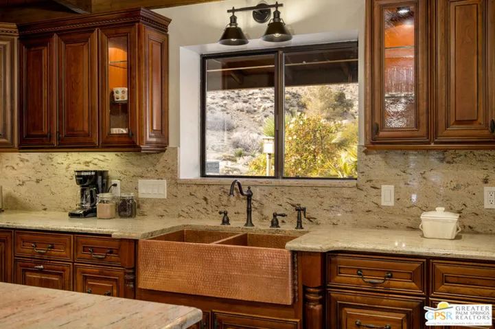 ATTENTION Buyers, The Koi pond has been evaluated and confirmed it can be converted to a pool. We have a new bid in hand. Discover Ridge Oasis, a stunning 3-bedroom, 2.5-bath fully-furnished retreat set against the hills of Yucca Valley’s serene Country Club neighborhood. Perfect as a primary residence, a vacation escape, or a high-potential investment, this fully furnished home blends desert serenity with modern elegance, just minutes from Joshua Tree National Park. Inside, the open floor plan is bright and spacious, with high ceilings and clean modern finishes. The centerpiece is a gourmet kitchen, outfitted with dual islands, two sinks, and premium appliances; it’s a chef’s dream, perfect for family gatherings or entertaining. Enjoy morning coffee at the breakfast nook or host dinner parties in the elegant dining room, with seating for eight, complete with a cozy reading corner overlooking the expansive living area. The living room, bathed in natural light, offers breathtaking desert views through its expansive windows. Avast stone fireplace completes the space, creating a seamless connection to nature. The primary suite is a true haven, offering a sitting area, a spa-inspired ensuite with dual vanities, and walk-out doors to a serene patio – perfect for starlit evenings. Two guest bedrooms share a spacious bathroom with dual zones for privacy. A powder room and full laundry room round out the interior layout. Outside, the gated property invites exploration. Wonder paths lined with palm and Joshua trees, relax by the exotic Japanese Koi pond (which includes complete pool infrastructure for conversion), or stargaze from the upper deck’s sweeping views. The hot tub and spacious entertainment patio make it easy to host and unwind. The home also comes with a three-car garage, a large custom shed, and an upgraded solar system (keeping utility costs low).Just a short drive from local dining, shopping, and hiking, Ridge Oasis offers seclusion and accessibility. Schedule your tour today to claim this desert masterpiece as your forever home!