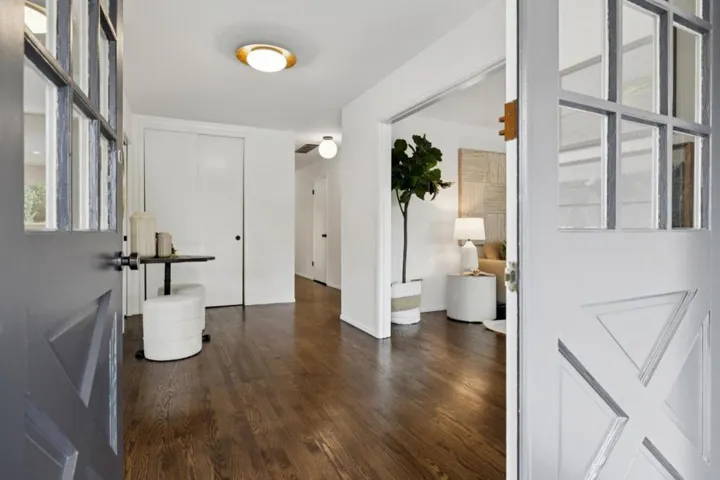 Stunning curb appeal in the Burlingame Hills sets the tone for this beautifully appointed home. Lush landscaping and an inviting entry lead to a light-filled foyer with gleaming hardwood floors. The formal dining room and stylish living room showcase refined elegance, featuring a floor-to-ceiling gas fireplace, expansive windows, and fresh designer paint. Down the central hallway, three generous bedrooms are served by a spacious full bath with colorful tile and a double vanity. The 4th bedroom, the private primary suite, is tucked away at the rear of the home offering a spa-like bath with soaking tub, walk-in shower, and a dedicated closet area. The updated kitchen boasts stainless steel appliances, a chefs eight-burner range, shaker cabinetry, farmhouse sink, and stylish counters with a casual eating area. It opens seamlessly to a spacious family room with its own fireplace and glass doors leading to a spectacular backyard.The outdoor space is truly exceptional, designed for both relaxation and entertaining, with custom brickwork, exposed aggregate, and a freeform pool in a serene natural setting. An enchanting street, two-car garage, and close proximity to Highway 280, SFO, Silicon Valley, top schools, and Burlingame Avenue complete this exceptional Peninsula offering.