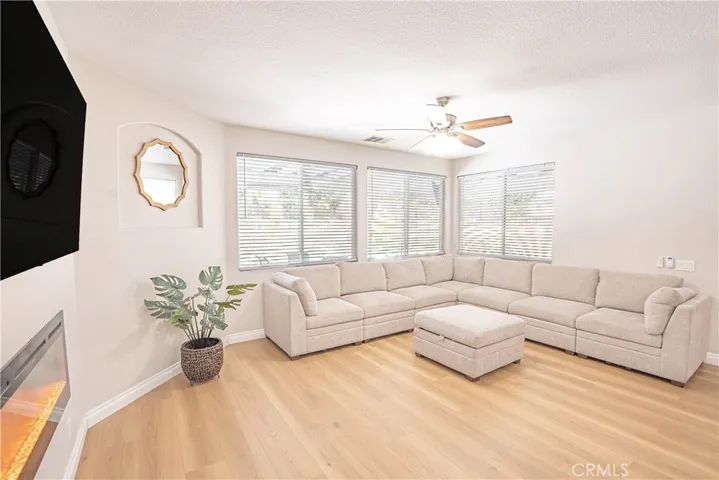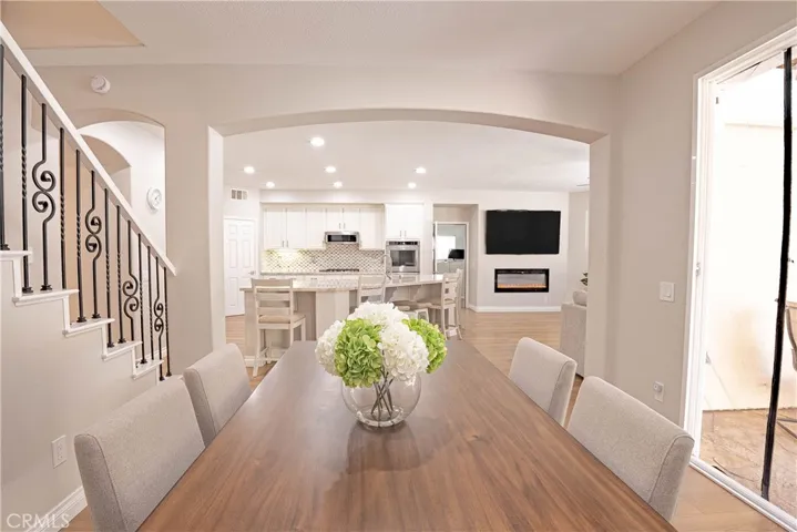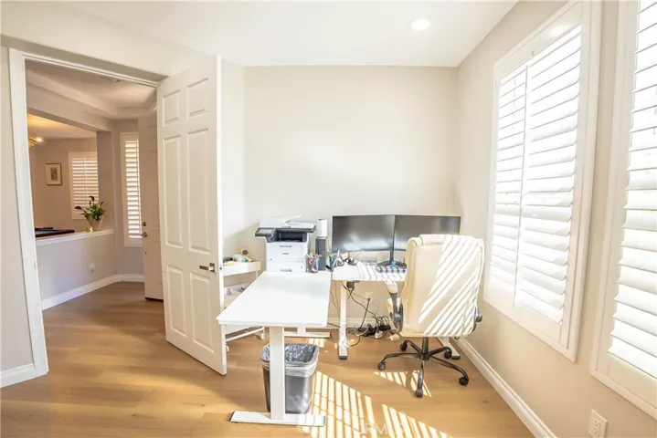 Welcome to this beautiful Tesoro del Valle home. Open concept floorplan, with lot of natural light, and a spacious kitchen with a lot of storage space will satisfy all your entertaining dreams. KitchenAid appliances, soft close drawers/cabinets, a walk-in pantry and adjacent updated butler’s pantry are just some of the features you’ll enjoy. First floor offers recess lighting with energy efficient LED lightbulbs, a flex room off the kitchen that can be used as a large office or another bedroom, and a den/bedroom and half bath, and a small gym adjacent to the garage . The upstairs bedrooms all feature large closets with built-ins, and there is a loft perfect for a play room or even another bedroom. Accessible from the dining room, enter a large backyard featuring a wonderful built in patio-cover with fans and electric heaters. SOLAR PANELS ARE FULLY PAID OFF and are able to generate electricity for the entire house! Additionally, a Tesla car charger has been installed in the garage, as well as a tankless water heater. The property is equipped with a smart sprinkler system and dual Nest thermostats allowing for optimal temperature control and energy efficiency throughout the home, as well as two laundry units upstairs and downstairs. The garage provides plenty of space for vehicles and additional storage needs, including an accessible attic. Tesoro del Valle Master HOA delivers beautiful amenities including 2 pools, a clubhouse, tennis courts, a playground & a beautiful duck pond, a gym and volleyball court. This home is also walking distance to a top rated Elementary & Junior High School. Do not miss this modern home that combines sustainability and comfort!