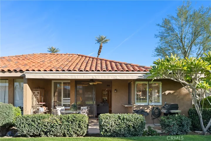 Discover the charm of this beautiful 2-bedroom, 2-bath plus den, Barcelona condo, spanning 1670 sq ft at Sunrise Country Club. Enjoy breathtaking views of the golf course and majestic West-facing mountains. Ideal for those seeking a serene retreat in a prestigious community. The open and bright kitchen with custom cabinets, and breakfast bar, is open to the living room with a fireplace. A separate den could be used for an entertainment room, reading space or just lounging. The separation of bedrooms allows privacy while entertaining guests. Two spacious bedrooms, both with large wall-to-wall closet. Indoor laundry and a 2-plus car garage. Sunrise Country Club has an 18-hole executive course and is also well-known for its Tennis Club. 21 Pools and spas, a newly renovated fitness center, bocce ball, and pickleball complete the variety of activities offered. The Clubhouse offers fine dining as well as a lounge. In addition, the Grill is for more casual dining. Sunrise Country Club is close to Eisenhower Medical Center, The River, El Paseo, great restaurants and shopping.